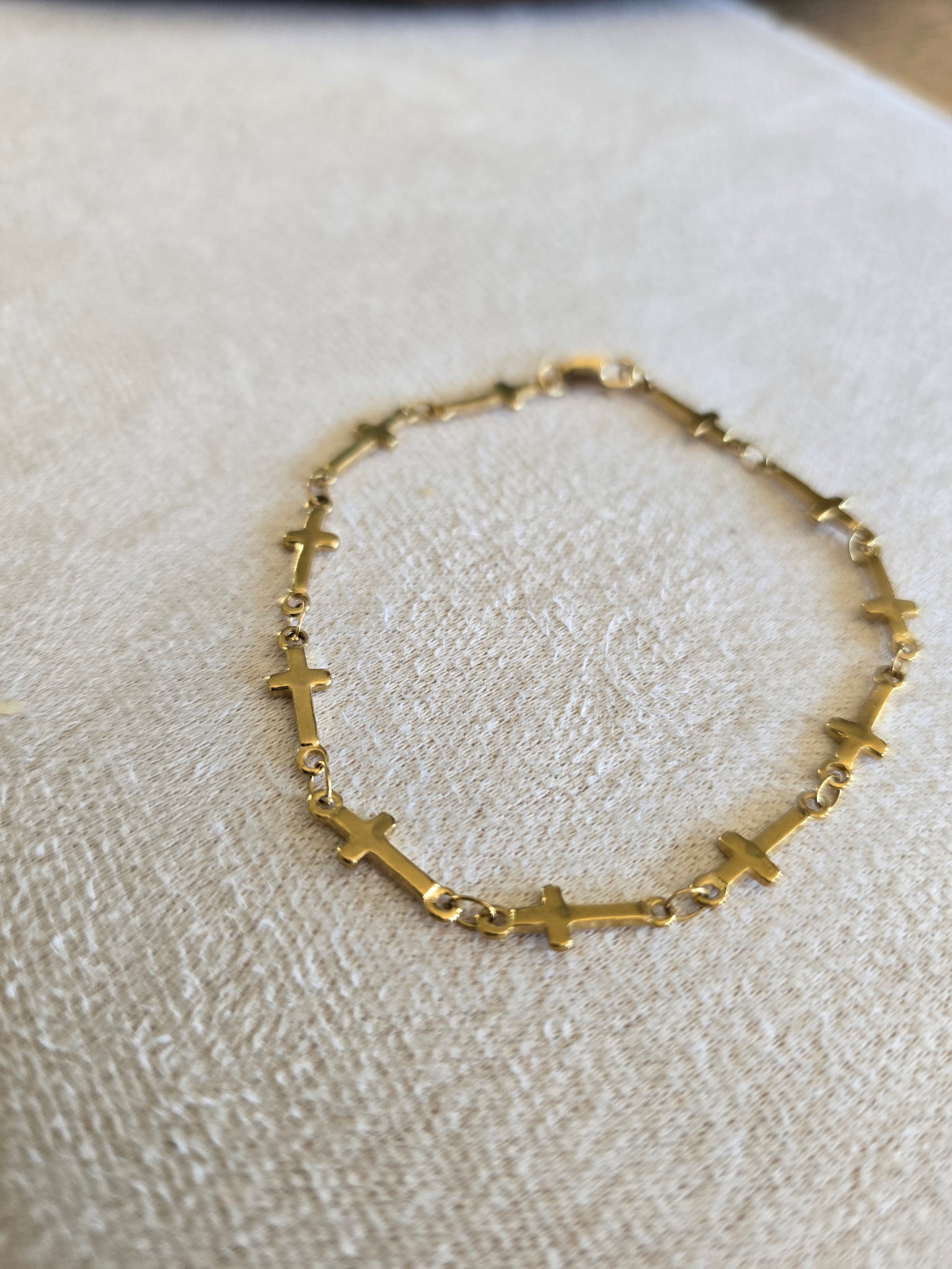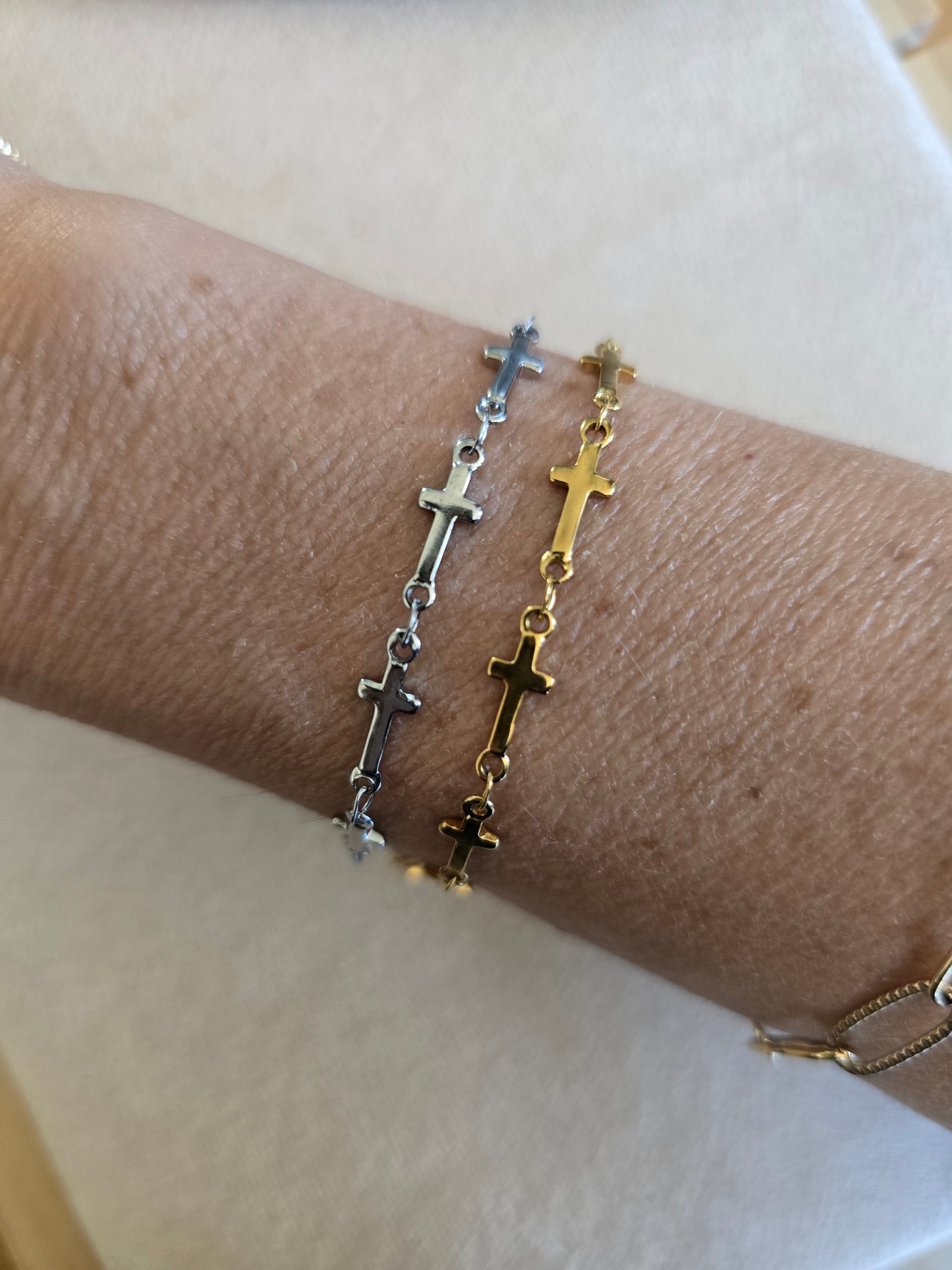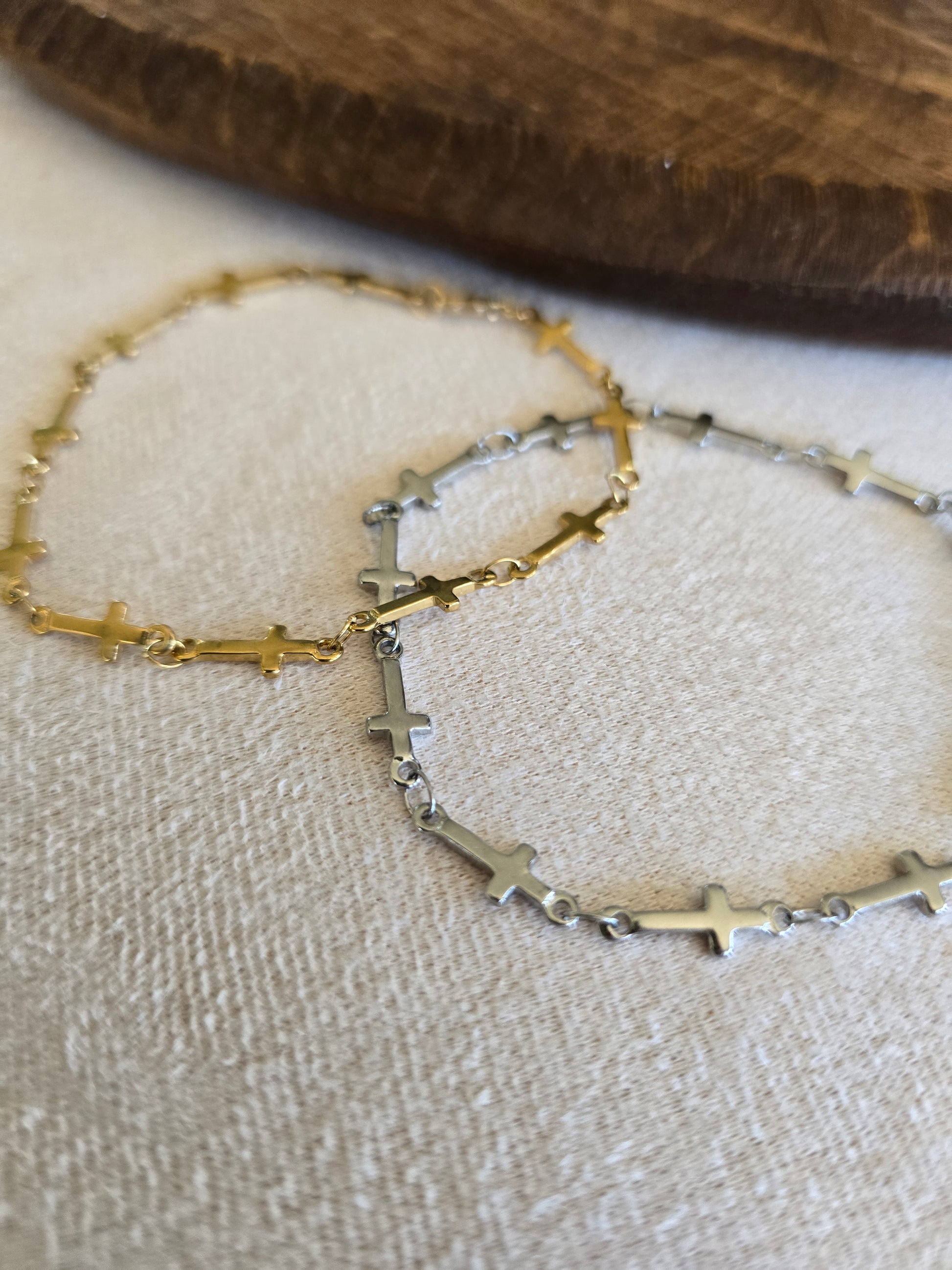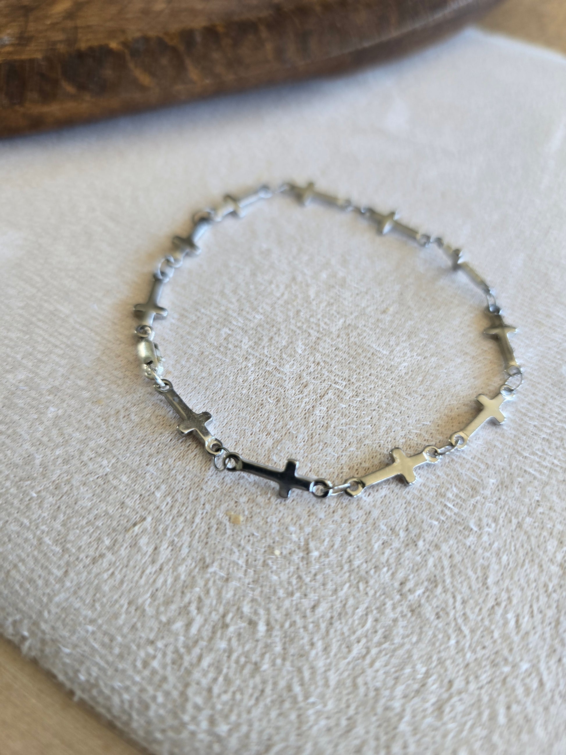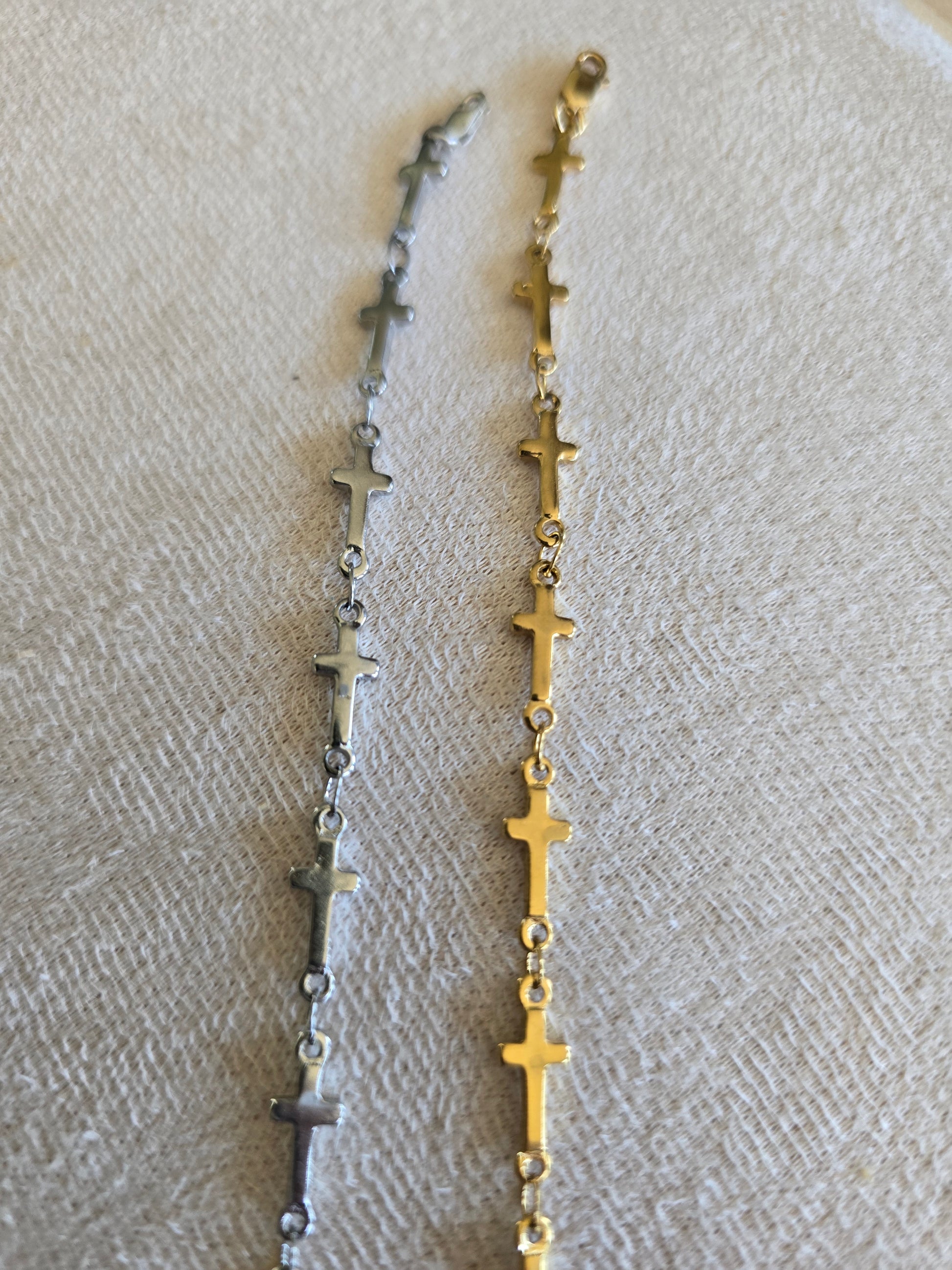 So pretty stacked or add to some western flair! Sturdy and linked with crosses all the way around. Each cross measure approximately 8mm x 4mm and features a lobster clasp for durability. Available in 14k Gold-fill or Sterling Silver