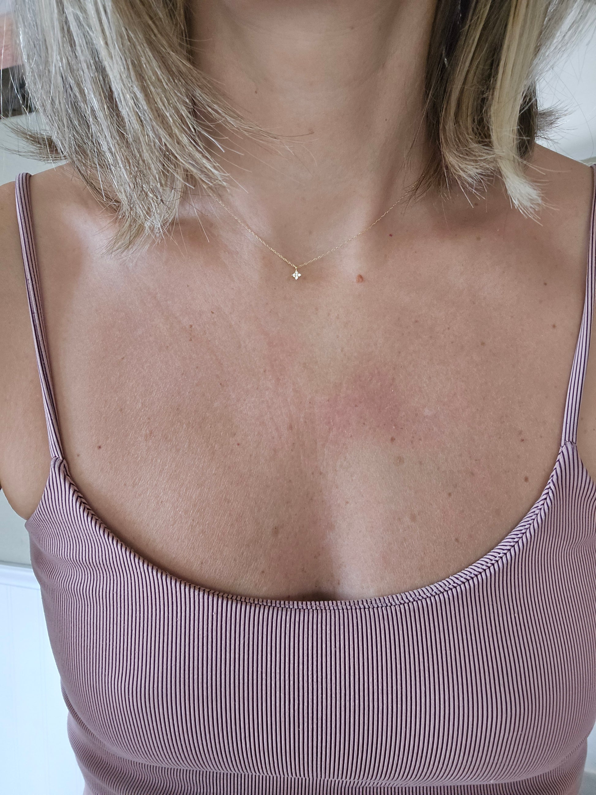 Our Girls Best Friend necklace is just that. Get ready to be inseparable! Ultra Dainty mini 4mm diamond like stone on a mini twist chain. So cute for the minimalist girl. Its a touch of sparkle that shines on her own but dainty enough to leave on and pair with your other favorite Honey and Gold pieces. We love the look of this necklace worn a bit shorter.