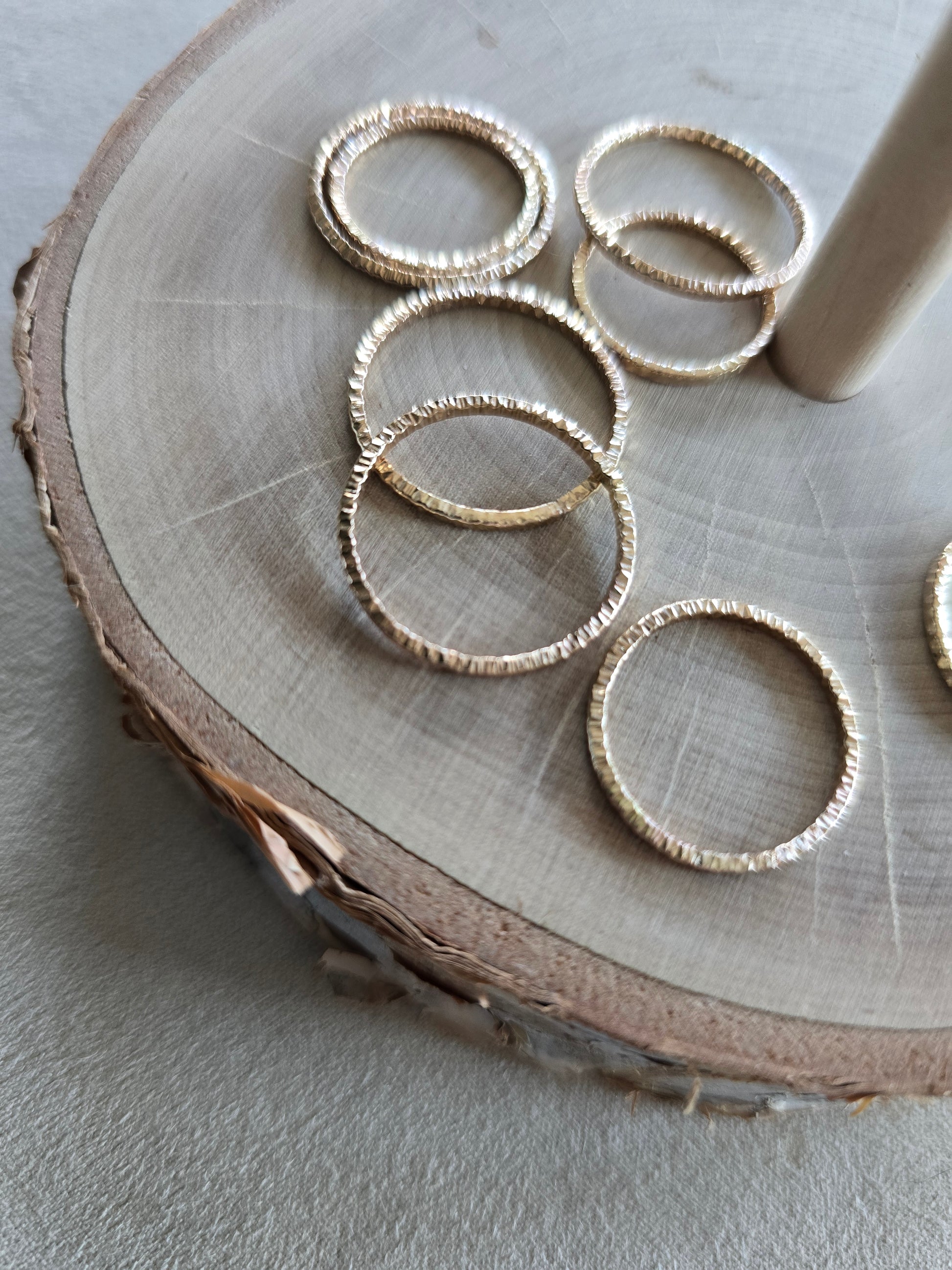 Add some shine to your ring stack with our 14k Gold-Fill Diamond Cut stacking ring. So cute and dainty worn alone or add to any existing ring or paired with your favorite Honey and Gold ring. Unique carving in the ring gives it that diamond cut effect for extra shimmer.
