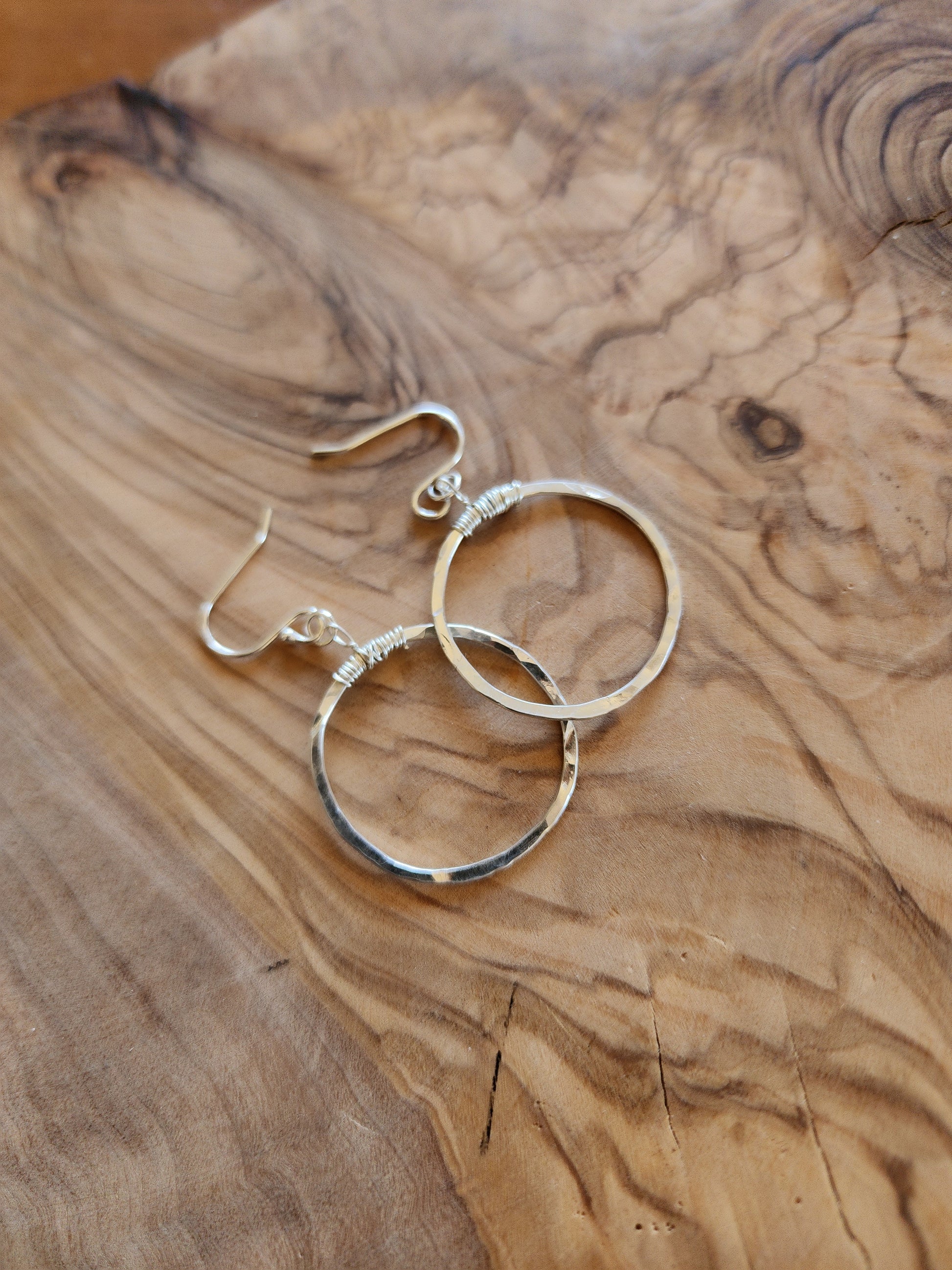 Each pair is hand-forged, hammered and shaped using 925 Sterling Silver. Perfect for sensitive ears, you’ll find yourself wearing these daily. Easily translate from day to night, casual to dress attire. The hand-hammering reflects light beautifully and makes each pair truly unique. Measuring approximately the size of a quarter.