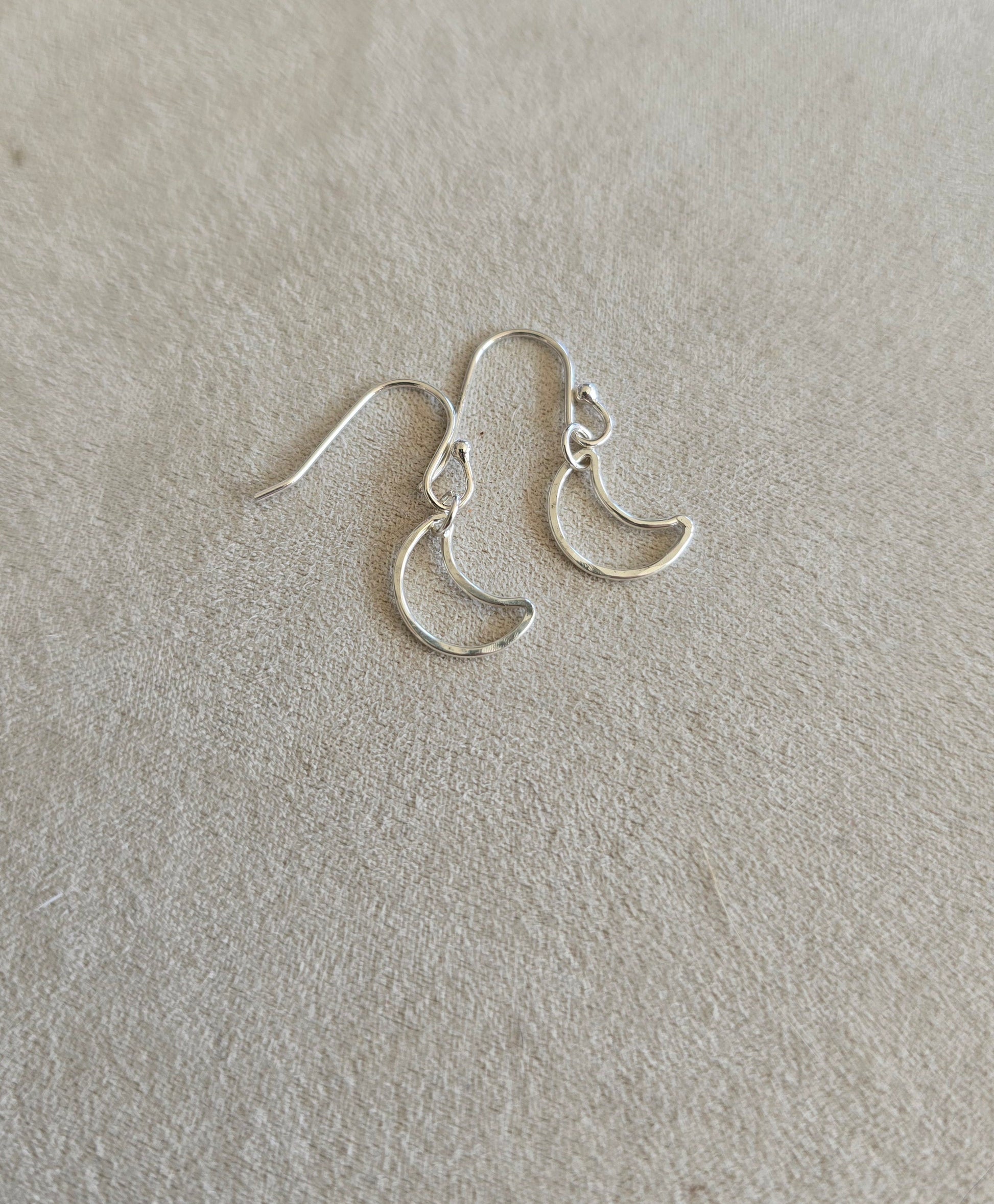 Slightly Hammered Crescent Moons in Sterling Silver. Perfect for sensitive ears, light-weight and measure approximately .5 inches