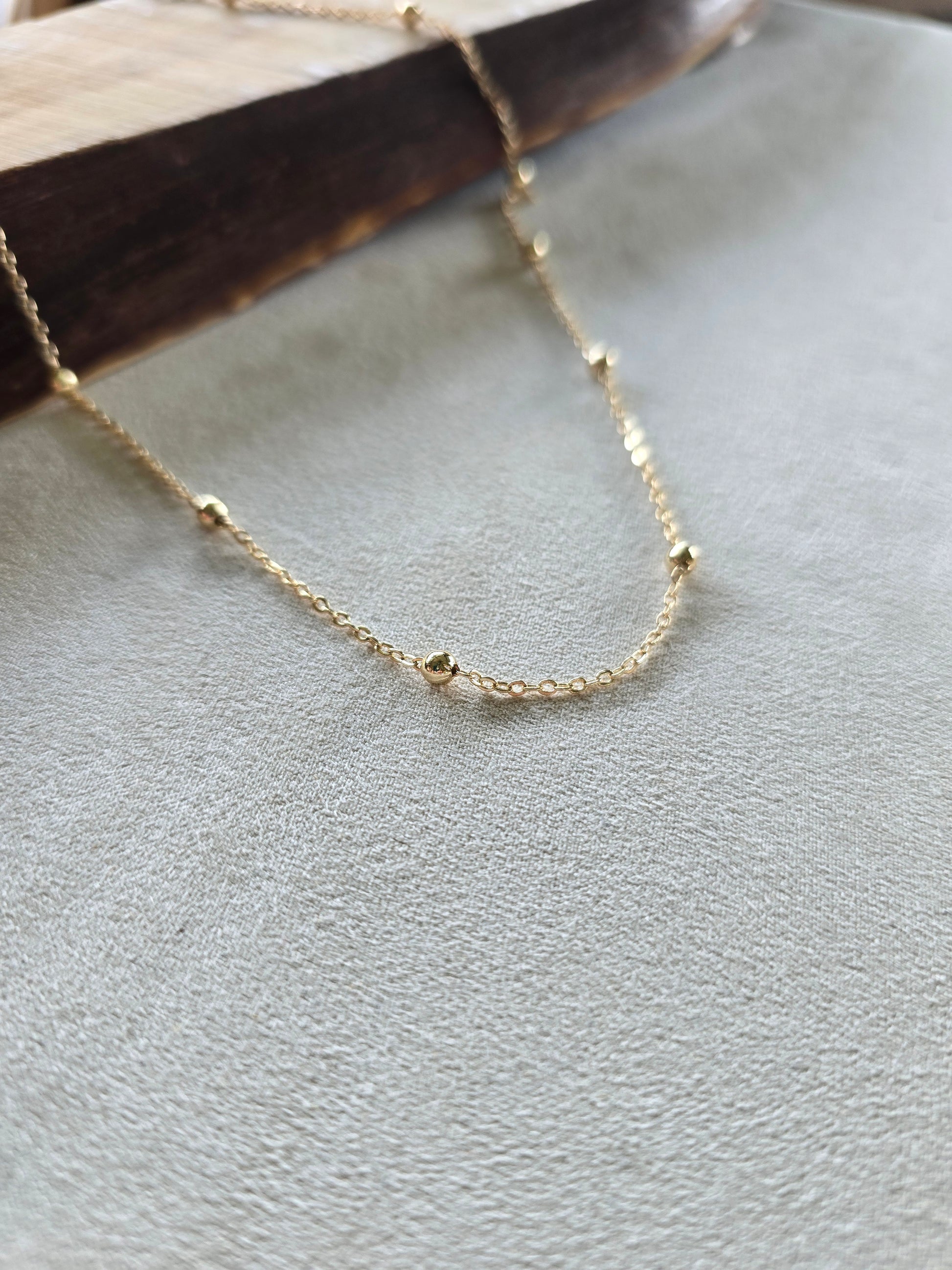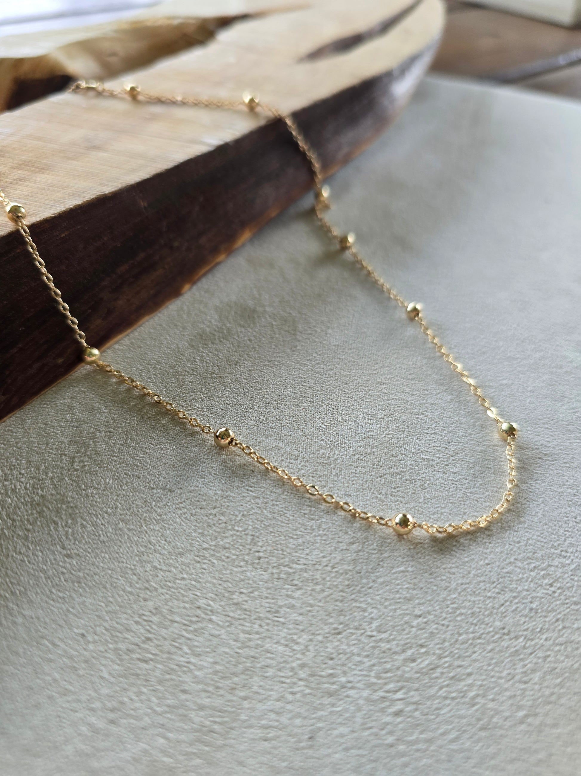 A personal favorite to wear solo or layer with. A little thicker than our traditional satellite style necklaces adding a bit more substance. Genuinely a favorite.