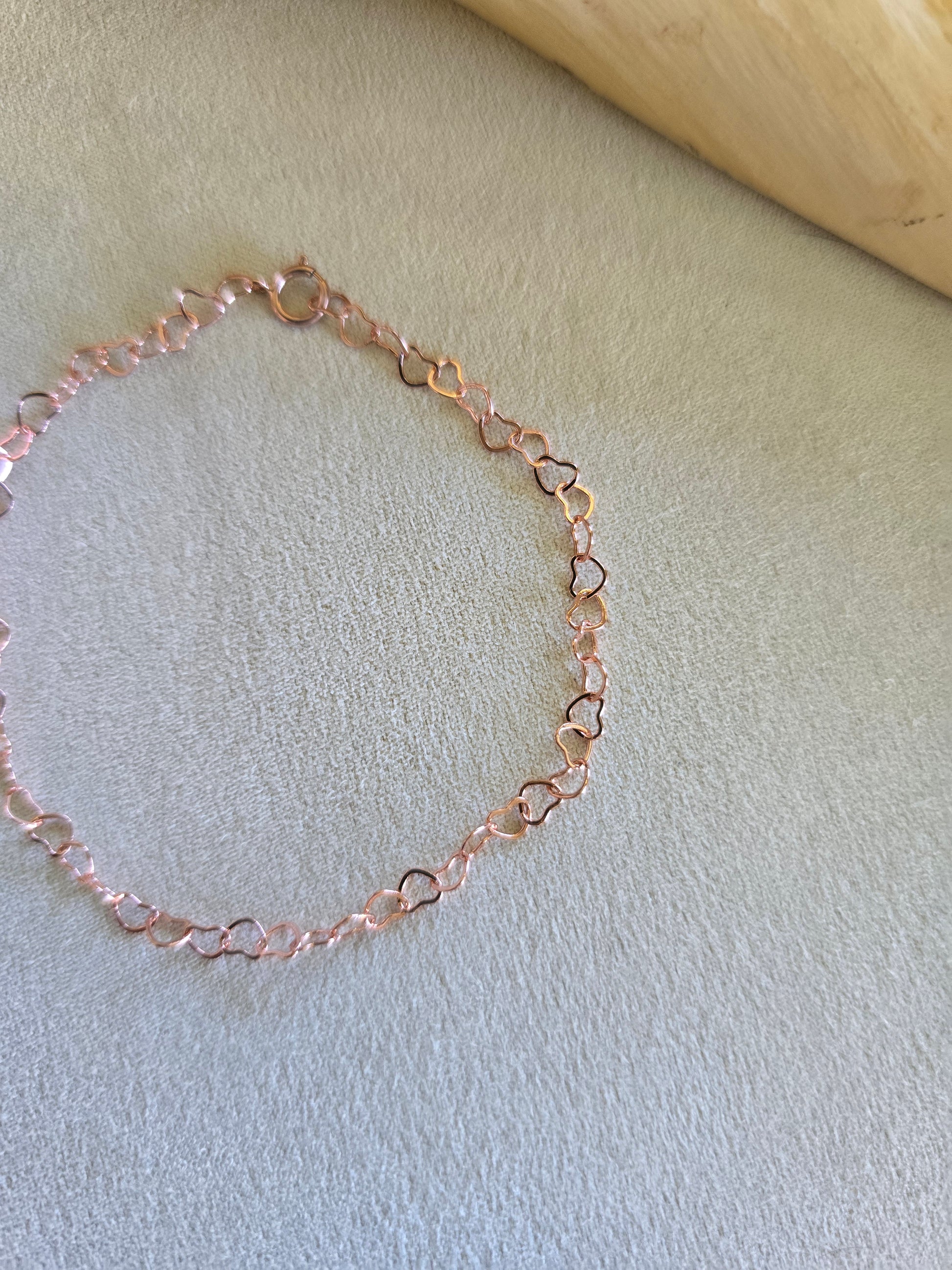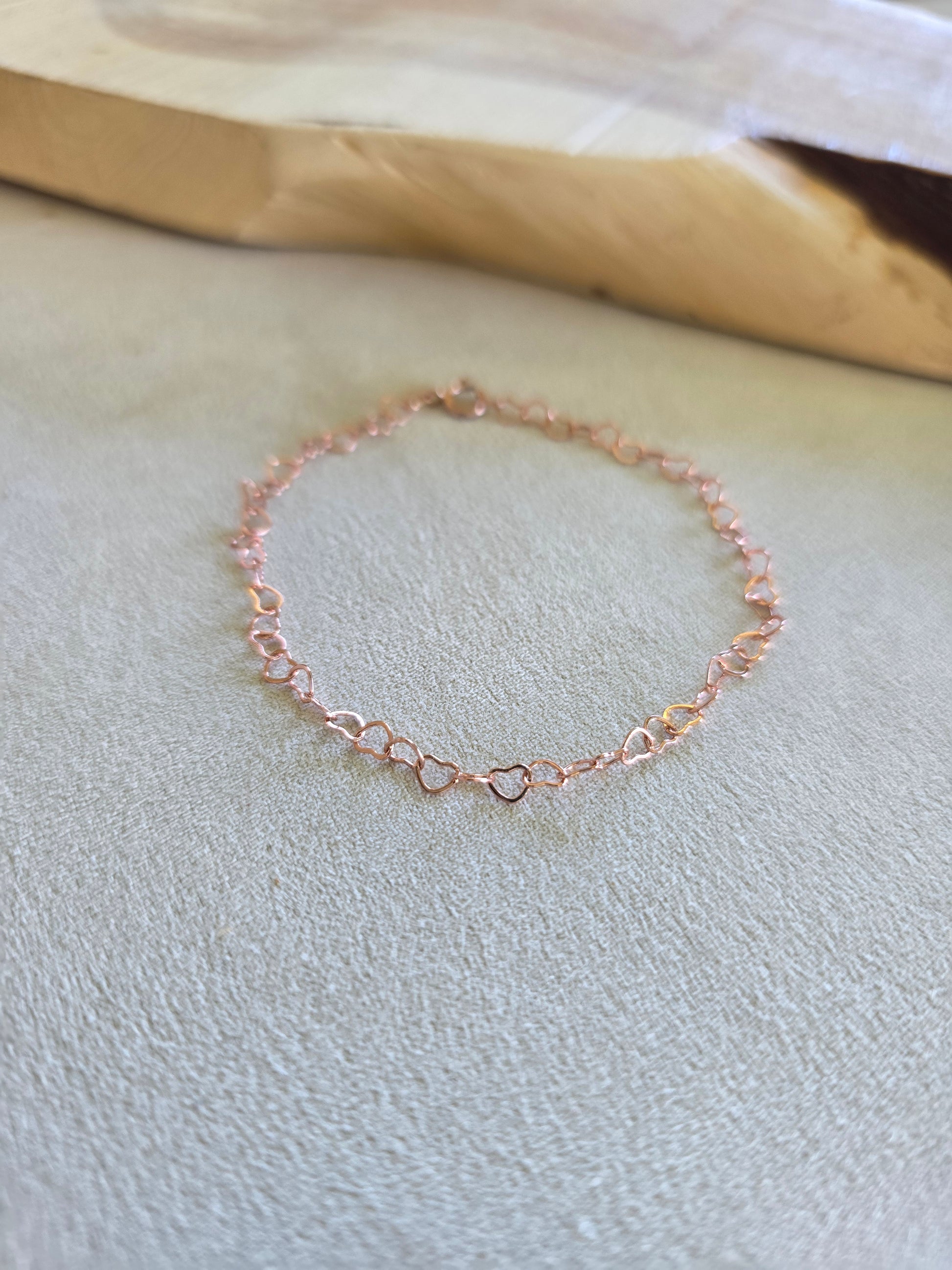 Our popular Heart Link Bracelet in a beautiful Rose Gold-fill. Such a rich beautiful color. Easy to adjust for a fitted or looser style by linking any of the hearts