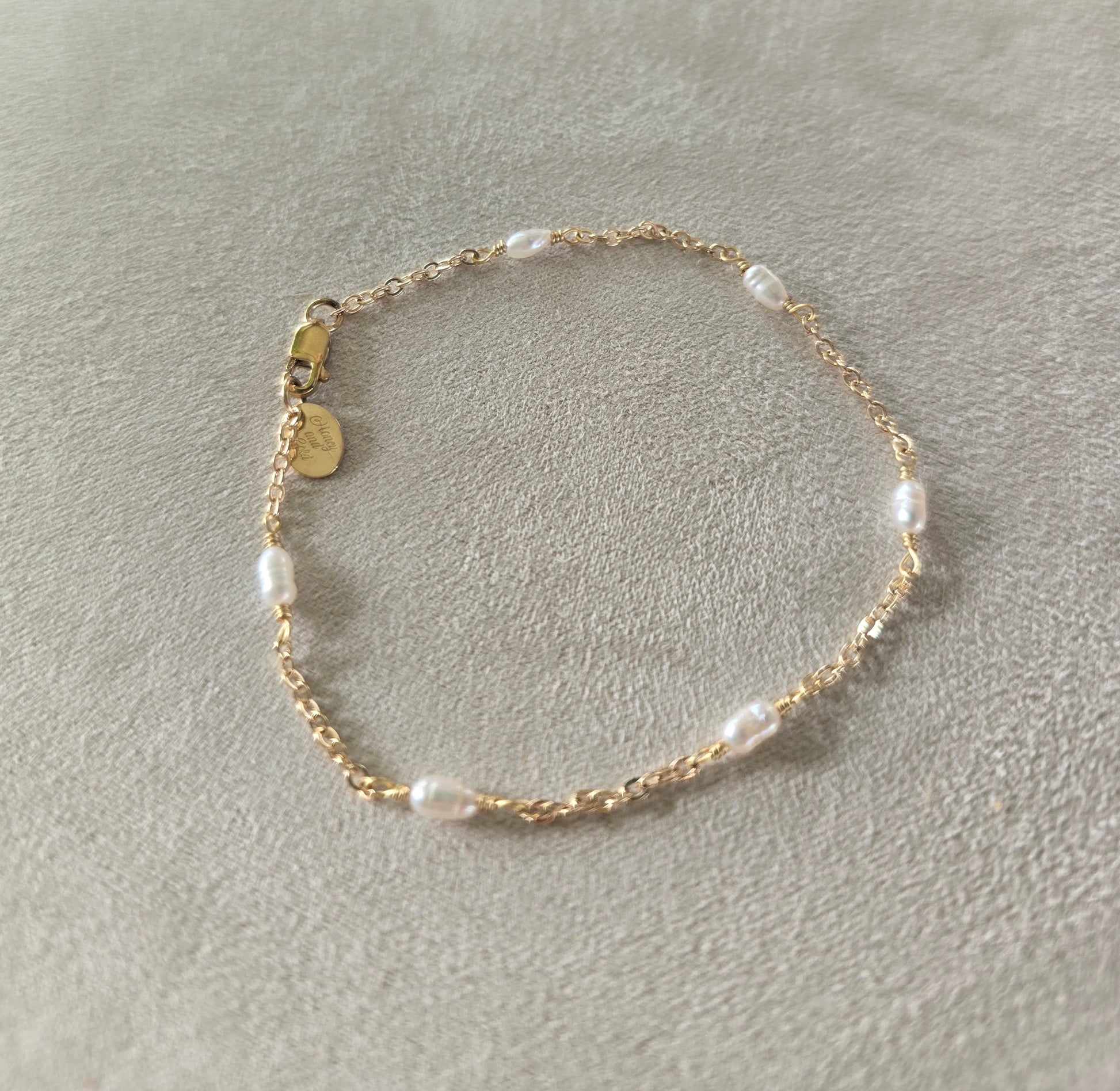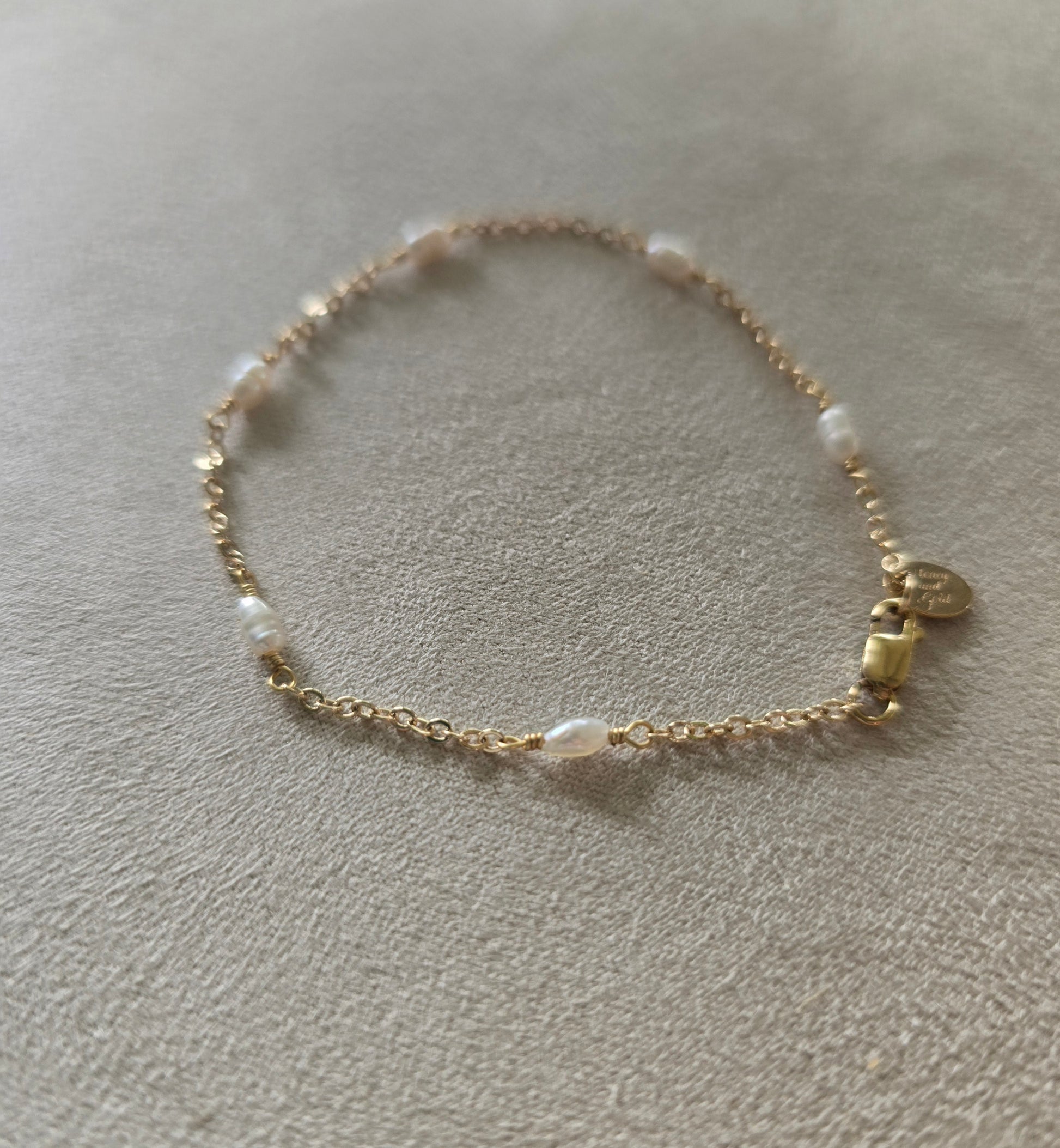 Seeds of Fresh Water Baroque mini pearls adorn a 14K gold-fill classic cable chain. These dainty pearls are the perfect balance without looking or feeling bulky. Classic and timeless!