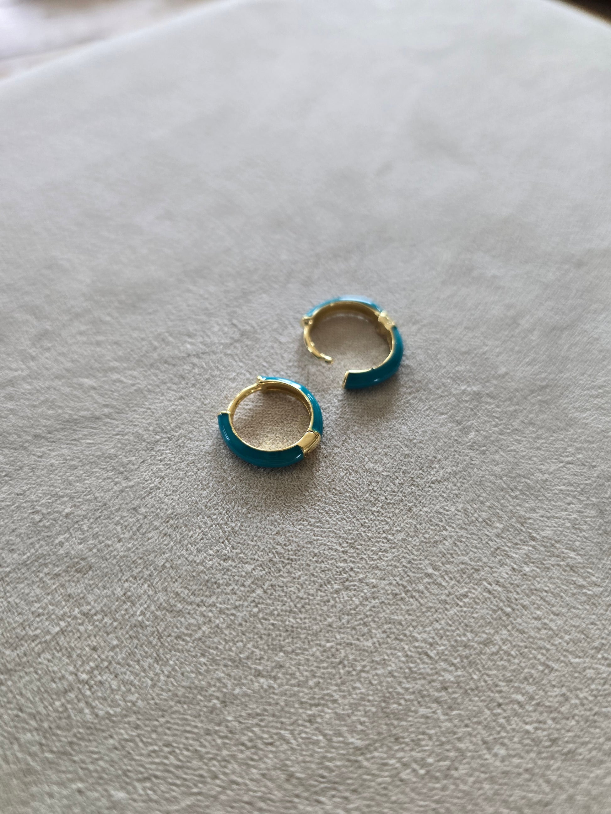 If sunshine were an earring! Comfortable, 14k Gold-fill Huggies Earrings are here. Available in a Classic Black, Teal and Punky Pink. Add these to your earring stack or wear everyday. Hoops measure approximately 12mm and are great for sensitive ears!