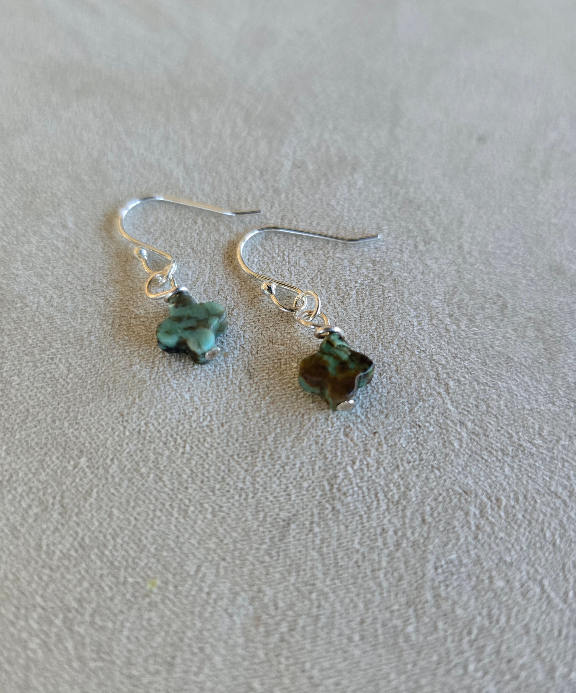 Turquoise Band of Clover Earrings that match our Band of Clover Bracelet. Beautiful Unique Turquoise Colors in each clover. So light-weight you'll forget you're wearing them. Sterling Silver Ear wires and wrapped in Sterling Silver, perfect for sensitive ears.